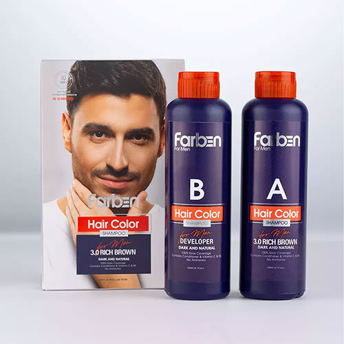 شامپو رنگ مردانه فاربن برای پوشش 100% سفیدی موهای آقایان توصیه میشود. این محصول رنگ ثابت و پایداری را بر روی مو ایجاد کرده و تا 18 شستوشو باقی میماند. این شامپو، بدون ایجاد هرگونه سوزش یا خارش بر روی پوست سر، رنگ مشکی طبیعی بر روی موهای آقایان ایجاد میکند. این محصول بدون آمونیاک و مشتقات اتانول آمین فرموله شده و در نتیجه موهای سفید بدون هرگونه آسیبرسانی به مو و ایجاد خشکی و ریزش مو پوشش داده میشوند. این شامپو همچنین حاوی آبرسانهای قوی است در نتیجه باعث لطافت و طراوت موها میشود. رنگ مشکی طبیعی ایجاد شده توسط این شامپو یکدست و یکنواخت بوده و موها چند رنگ دیده نمیشود. از جمله مزایای این محصول سهولت استفاده از آن و سرعت رنگ شدن موهای سفید است. این محصول منطبق با استاندارد FDA آمریکا تولید شده است.