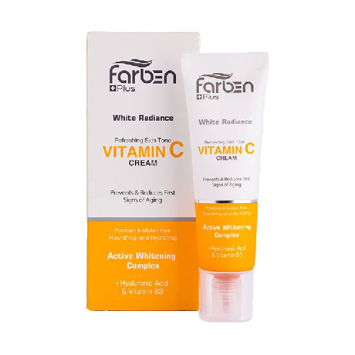 ژل کرم ویتامین C فاربن حاوی هیالورونیک اسید و ویتامین B3 حجم 30 میل ساختاری سبک و غیر چرب دارد. ویتامین C خواص زیادی برای پوست دارد؛ ویتامین C با خاصیت روشن کنندگی و ضد چروک، باعث روشنی پوست و کاهش علائم پیری پوست می شود. هیالورونیک اسید با خاصیت آبرسانی عمیق بافت پوست، در حفظ رطوبت، شادابی و جلوگیری از ایجاد چین و چروک موثر است. ویتامین B3 خاصیت آبرسانی داشته و عامل ضد پیری برای پوست به حساب می آید. این ژل کرم با ترکیبات موثر از اولین نشانه های افزایش سن بر روی پوست جلوگیری کرده و پوستتان را شفاف و شاداب می کند. این محصول فاقد پارابن و گلوتن است.