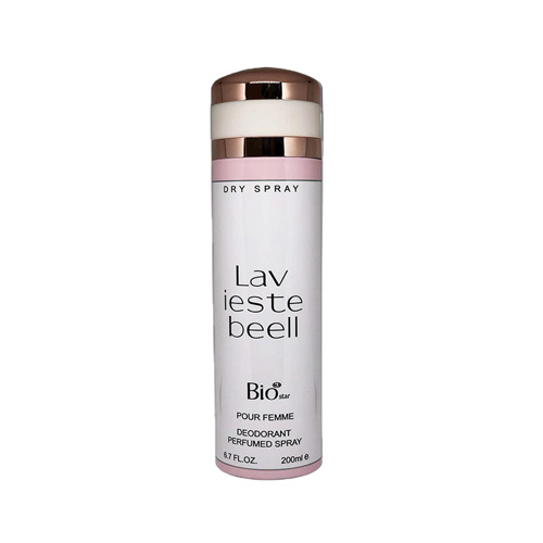 اسپری بدن زنانه مدل Lavieste Beell بیو استار، اسپری مناسب برای خانمها است که به دلیل داشتن رایحه فوقالعاده گزینهی مناسب برای استفاده روزانه است. همچنین این اسپری به دلیل داشتن طبع شیرین و گرم برای فصول سرد گزینهای مناسب است. در لحظات ابتدایی استفاده از این اسپری شما میتوانید رایحه انگور سیاه و گلابی را استشمام خواهید کرد. با گذشت زمان رایحههای گل زنبق، یاسمین و شکوفه پرتقال خودنمایی خواهد کرد و در نهایت شما ترکیبی از گل زنبق، یاسمین و شکوفه پرتقال به همراه خود خواهید داشت.