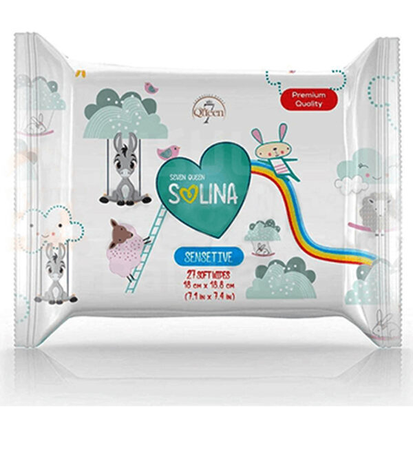 دستمال مرطوب کودک سون کوئین مدل سولینا حاوی ویتامین E و B5 بسته 27 عددی