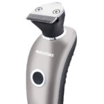 ریش تراش پرومکس مدل 9900 ریشتراشی چرخشی با خط زنی دوطرفه و صفحهنمایش مخفی بوده و با برق و باتری قابل شارژ کار میکند. تیغههای ماشین اصلاح از استیل ضدزنگ هستند و موهای صورت را از نزدیکترین نقطه به پوست قطع میکنند. ویژگی جالب این ماشین اصلاح خط زن آن است که به شکل یک سری جداگانه طراحی شده و جای سری چرخشی مینشیند. سری خط زن دو تریمر باریک و عریض دارد که برای خط انداختن و مرتب کردن موهای ریش و سبیل بسیار مناسباند. عرض خط زن پهن 32 میلیمتر و عرض خط زن باریک 8.3 میلیمتر است. ریش تراش پرومکس مدل 9900 به باتری لیتیوم یونی قابل شارژی مجهز است که در مدتزمان 1.5 ساعت شارژ کامل میشود و پس از آن تا 1 ساعت میتوان به شکل بیسیم از دستگاه استفاده کرد. برخلاف بعضی ماشینهای اصلاح، از این مدل در حالت متصل به شارژر هم میتوان استفاده کرد و مشکلی بابت تمام شدن ناگهانی شارژ باتری وجود ندارد. درصد باتری باقیمانده را میتوان روی صفحهنمایش دیجیتال ماشین اصلاح مشاهده کرد. این صفحهنمایش در ظاهر مخفی است و با روشن کردن دستگاه دیده میشود. برای شارژ کردن باتری میتوان شارژ را مستقیماً به انتهای ماشین اصلاح وصل کرد؛ اما راه آسانتر، استفاده از پایهی شارژی است که همراه دستگاه ارائه شده و ماشین اصلاح به شکل ایستاده روی آن قرار میگیرد. از ویژگیهای ظاهری ماشین اصلاح پرومکس مدل 9900 باید به طراحی ارگونومیک آن اشاره کرد که در دست گرفتن و استفاده از آن را راحتتر میکند. این ماشین اصلاح با داشتن گواهینامه IPX5 در برابر پاشیدن آب مقاوم است. بنابراین میتوان پس از اصلاح بهراحتی سر آن را زیر شیر آب گرفت و شست و شو داد. توجه داشته باشید که دستگاه نباید کاملا در آب غوطهور شود. برای نگهداری از ماشین اصلاح میتوان از کیف پلاستیکی آن استفاده کرد. به طور خلاصه ریش تراش پرومکس مدل 9900 دارای تیغههای چرخشی از جنس استیل ضدزنگ، خط زن جدای دوطرفه، باتری لیتیوم یونی قابل شارژ، پایهی شارژ، صفحهنمایش دیجیتال، طراحی ارگونومیک و قابلیت شستشو بودن و استفاده به صورت بی سیم و باسیم ، اشاره نمود.
