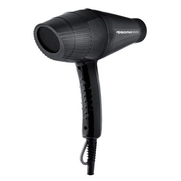 سشوار پرومکس مدل 7200 سشواری حرفهای دارای موتور ۲۰۰۰ وات، دکمهی فناوری تولید یون و سه متمرکز کنندهی هوا است. موتور سشوار از نوع AC است که مخصوص سشوارهای مورداستفاده در سالنهای آرایشی می باشد چرا که سرعت زیاد باد این سشوار،کاملا برای براشینگ مناسب است. از ویژگیهای بارز این سشوار فناوری تولید یون با دکمهی فعالسازی است. در بالای دستهی سشوار دکمهی تولید یون وجود دارد که با فشردن آن ژنراتور یونی فعال شده و یونهای منفی تولید میکند. این یونها با باد سشوار خارج میشود و پس از برخورد به موها الکتریسیته ساکن روی آنها را از بین میبرند. بهاینترتیب وز شدن مو کمتر اتفاق میافتد و حالت دادن به موها هم راحتتر میشود. سشوارهای خانگی عموماً یک متمرکز کننده دارند اما این سشوار حرفهای دارای سه متمرکز کنندهی هوا با اندازههای مختلف است که با توجه به نیاز میتوان از یکی از آنها استفاده کرد. فیلتر ورودی هوا را میتوان به شکل چرخشی جدا کرده و با فیلتر یدکی که همراه سشوار ارائه شده تعویض کرد و یا اینکه آن را شست. به اینترتیب علاوه بر اینکه قدرت باد سشوار حفظ میشود، عمر آن هم افزایش مییابد. برای حالت دادن و خشککردن موها میتوان سرعت و حرارت باد را روی مقدار دلخواه تنظیم کرد. برای این کار باید از دکمههای روی دسته استفاده کرد که دو حالت سرعت متوسط و زیاد و سه حالت حرارت ملایم و گرم و داغ را فراهم میکنند. از دیگر ویژگیهای سشوار پرومکس مدل ۷۲۰۰ میتوان به سیم ۳ متری و حلقهی آویزان کردن آن اشاره کرد که برای استفادهی در مکانهایی مانند سالنهای آرایشی ضروری هستند.