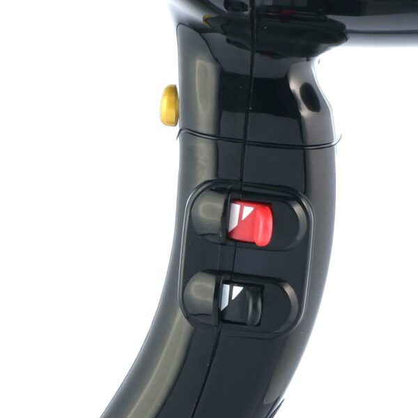 سشوار پرومکس مدل 7878K، یک سشوار فوق حرفه ای و پر قدرتِ با توان 2400 وات است که ساخت کشور ایتالیا بوده و نوع موتور آن AC می باشد. این سشوار بخاطر شکل خاص بدنه، دارای شدت باد و حرارت بیشتری نسبت به سایر مدل های پرومکس بوده و برای کاربردهای حرفه ای و آرایشگاهی مناسب است.موتورهای AC و DC دو نوع مختلف از موتورهای سشوار هستند که تفاوت عمده آن ها در قدرت و فشار باد خروجی و طول عمر دستگاه است. موتورهای AC عمر و قدرت خروجی بیشتری داشته و برای استفاده های حرفه ای و طولانی مدت مناسب تر هستند. سشوار پرومکس مدل 7878K از مرغوبترین نوع موتور AC استفاده می کند که باعث می شود عمر دستگاه به مراتب بیشتر از سشوار های رده پایین تر باشد. سشوار پرومکس مدل 7878K در کنار قدرت بالا، از امکاناتی همچون تکنولوژی یون منفی، خاصیت تورمالین، دکمه مخصوص کراتین، سه حالت تنظیم باد، سه حالت تنظیم حرارت و دو سری متمرکز کننده هوا بهره می برد. سیم بلند 3 متری و قابل چرخش و نیز حلقه آویز سشوار، از دیگر مواردی است که کاربری سشوار پرومکس مدل 7878K را در عین حرفه ای بودن، آسان تر کرده است.
