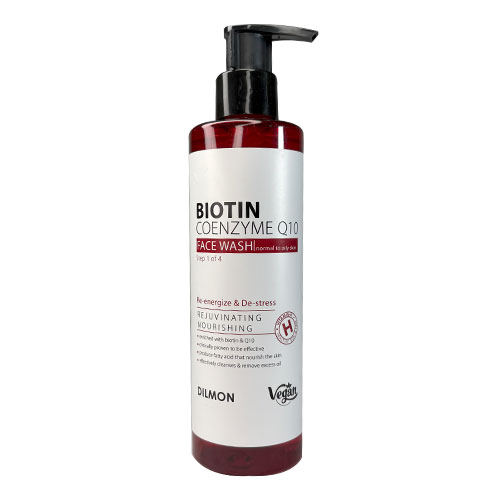 ژل شستشوی صورت بیوتین و کیوتن دیلمون دربردارندهی ترکیباتی ویژه و هدفمندی است که به صورت خاص در کمک به پاکسازی پوست صورت از آلودگی های روزانه، سلول های خشک و مرده و چربی اضافه کاربرد دارد و از خواص ضد پیری و ضد چروک برخودار می باشد.ژل شستشوی صورت بیوتین و کیوتن دیلمون، در کمک به افزایش گردش خون و بهبود جوانسازی پوست و بهبود شفافیت و درخشندگی طبیعی آن کارایی خود را نشان خواهد داد و همچنین به تنظیم ترشح چربی پوست و میزان نمودن پی هاش pH طبیعی پوست کمک می نماید و در تسکین و آرامش پوست سودمند بوده و برای پوست های معمولی تا چرب طراحی شده است.بیوتین موجود در این شویندهی صورت، آبرسان و برطرف کنندهی خشکی و پوسته پوسته شدن پوست و تسکین دهندهی آن است و کوآنزیم کیوتن Q10 به کار رفته در آن (ژل شستشوی صورت بیوتین و کیوتن دیلمون) دارای اثرات ضد اکسیدانی، ضد التهابی و ضد پیری می باشد که در کمک به بازسازی و ترمیم سلول های پوستی، کاهش علائم پیری پوست و کاهش چین و چروک و مبارزه با آلودگیها و رادیکال های آزاد مفید است.دی